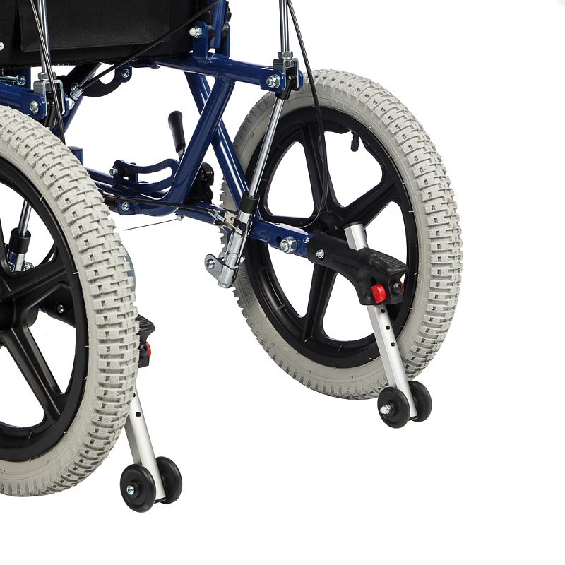 • Съемные колесные антиопрокидыватели с упором для сопровождающего лица, регулируемые по высоте