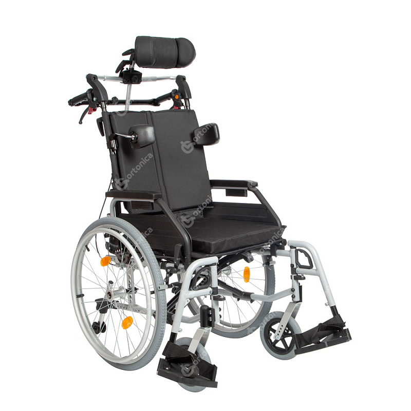 Ortonica Delux 500 обеспечивает комфорт пользователя за счет системы регулировки угла наклона спинки. Подголовник и боковые поддержки обеспечивают правильное положение пользователя в коляске. Изделие оснащено широким диапазоном регулировок, что позволяет настроить коляску под индивидуальные потребности пользователя. Съемная распорка спинки, колесные антиопрокидыватели с упором, ручки для сопровождающего, оснащенные тормозом с возможностью фиксации положения обеспечивают комфорт для сопровождающего лица.