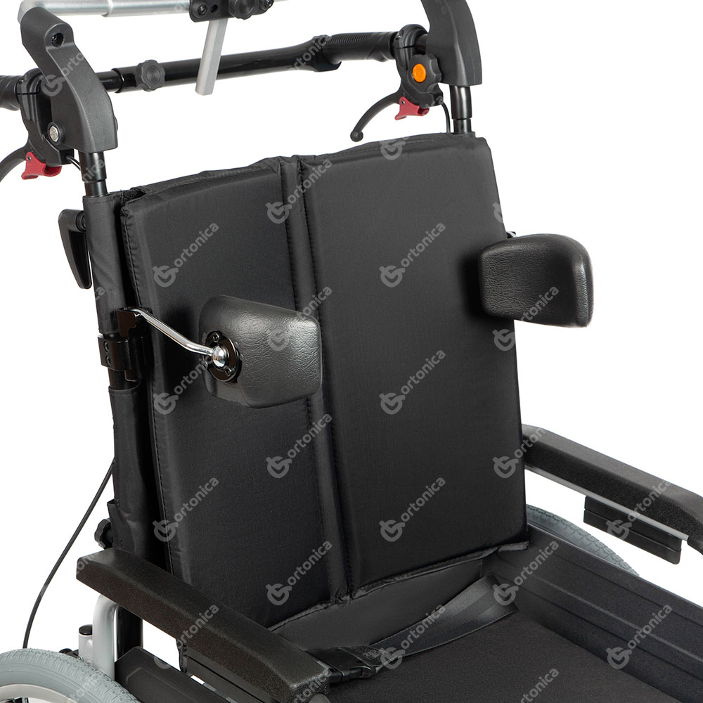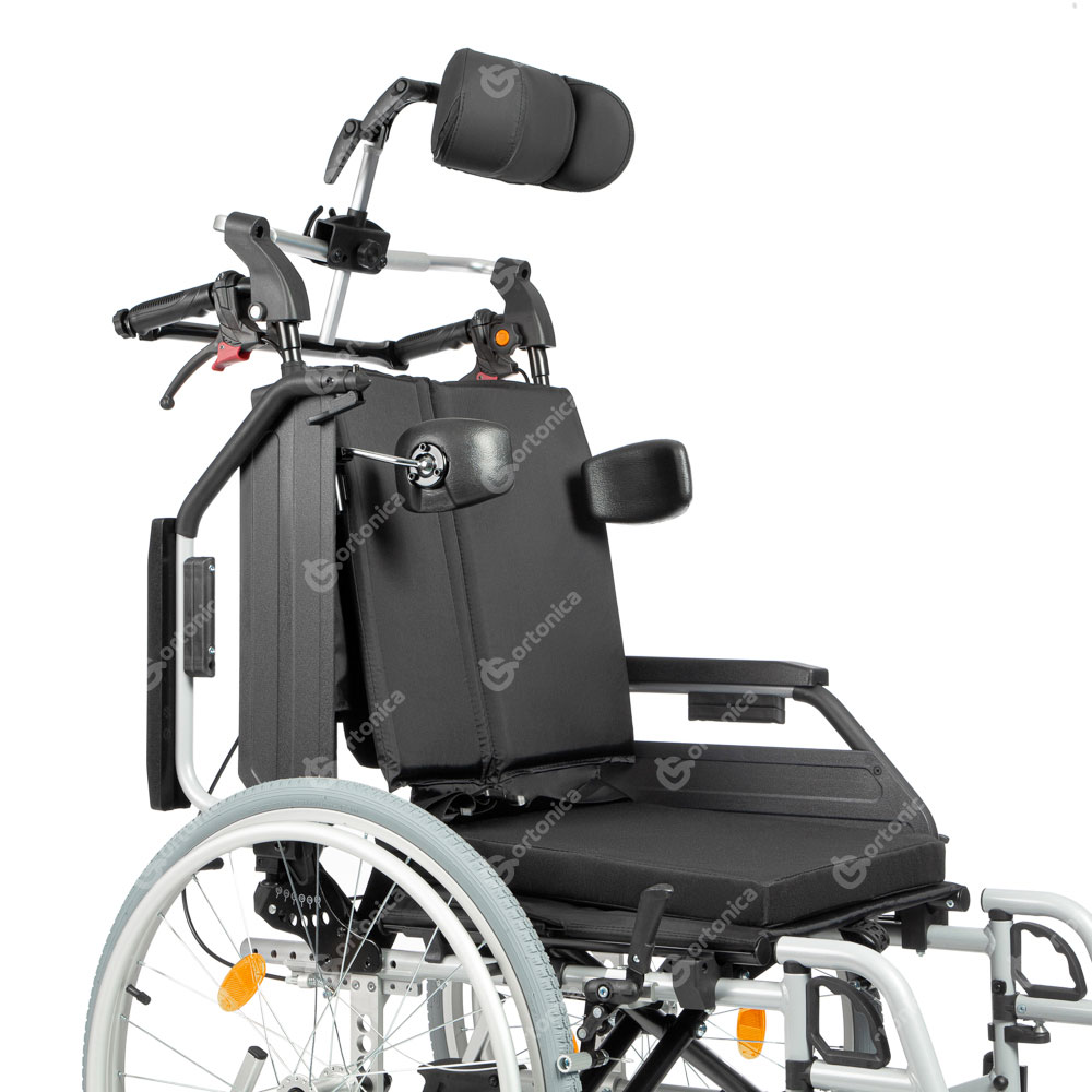 Ortonica Delux 500 обеспечивает комфорт пользователя за счет системы регулировки угла наклона спинки. Подголовник и боковые поддержки обеспечивают правильное положение пользователя в коляске. Изделие оснащено широким диапазоном регулировок, что позволяет настроить коляску под индивидуальные потребности пользователя. Съемная распорка спинки, колесные антиопрокидыватели с упором, ручки для сопровождающего, оснащенные тормозом с возможностью фиксации положения обеспечивают комфорт для сопровождающего лица.