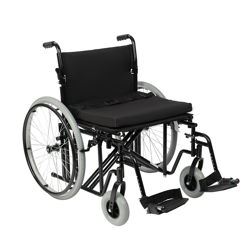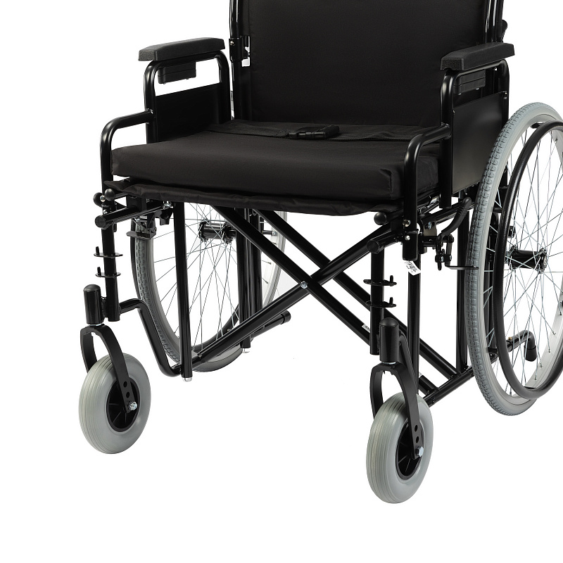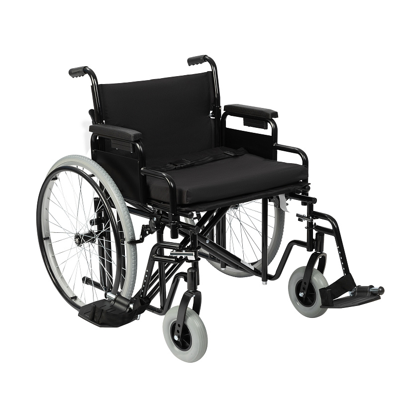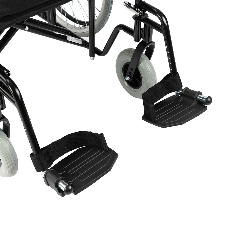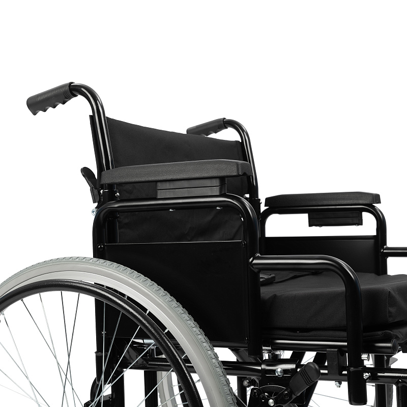 Кресло-коляска инвалидная повышенной грузоподъемности Ortonica Grand 200 с увеличенной шириной сиденья имеет стальную раму с усиленной крестовиной, что обеспечивает прочность, надежность и долговечность конструкции. Съемные подлокотники и откидные подножки облегчают пересаживание.