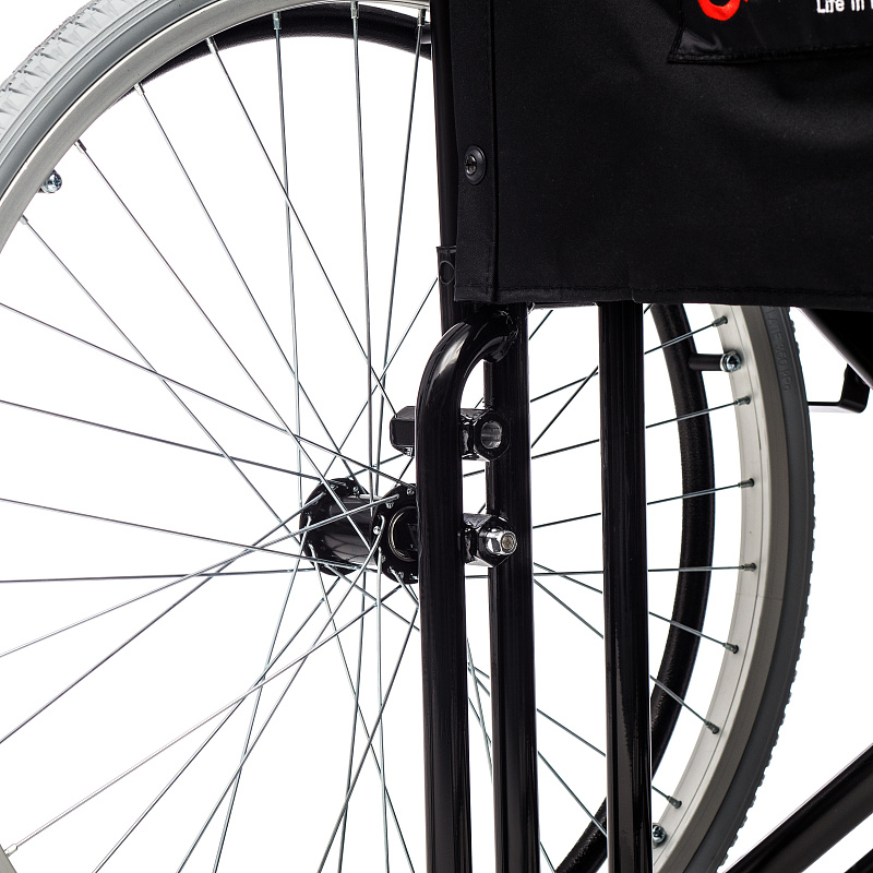 • Быстросъемные задние колеса с кнопочной фиксацией, регулируемые по вертикали