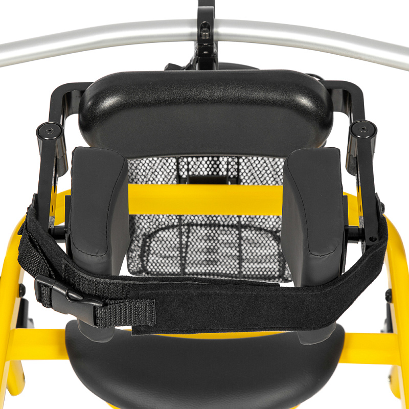 - Ходунки-роллаторы оснащены мягким откидным сиденьем и поддержкой таза