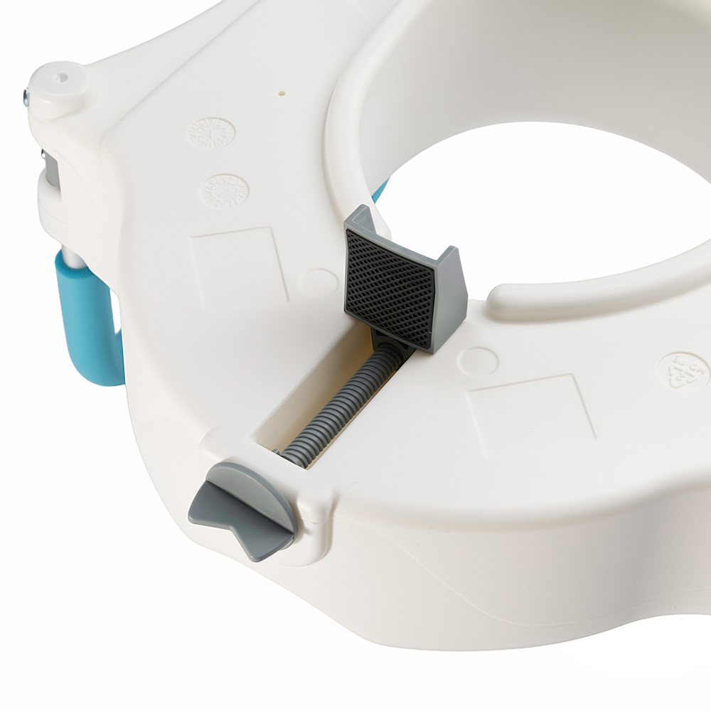 - Пластиковая насадка на унитаз со съемными поручнями увеличивает высоту унитаза